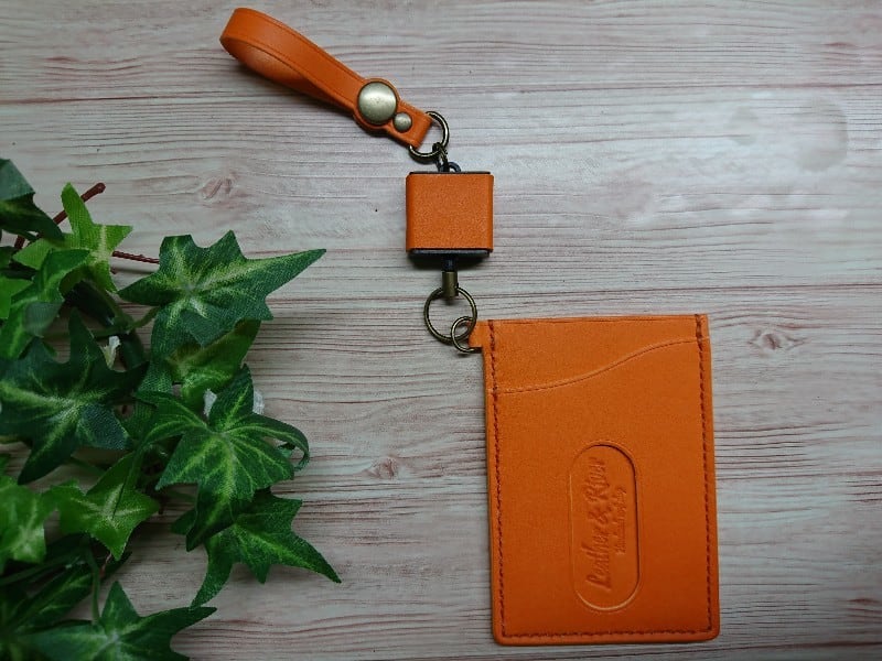 ハンドメイドの本革製(牛革)パスケースです。カラーは深緑、赤、オレンジ、ブラウン