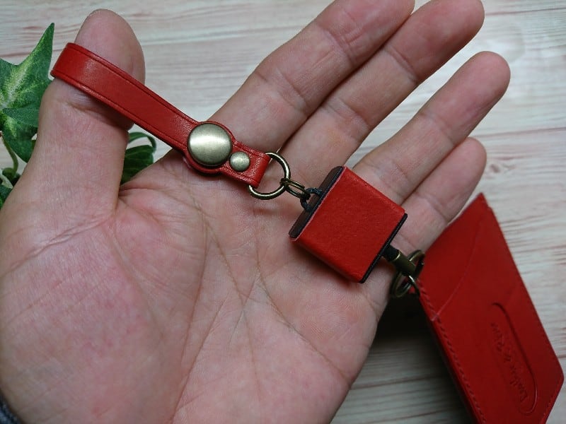 真ん中のポケットを開けやすくするために一手間加え、ストラップ部もリールタイプでより使いやすくしました(^-^)